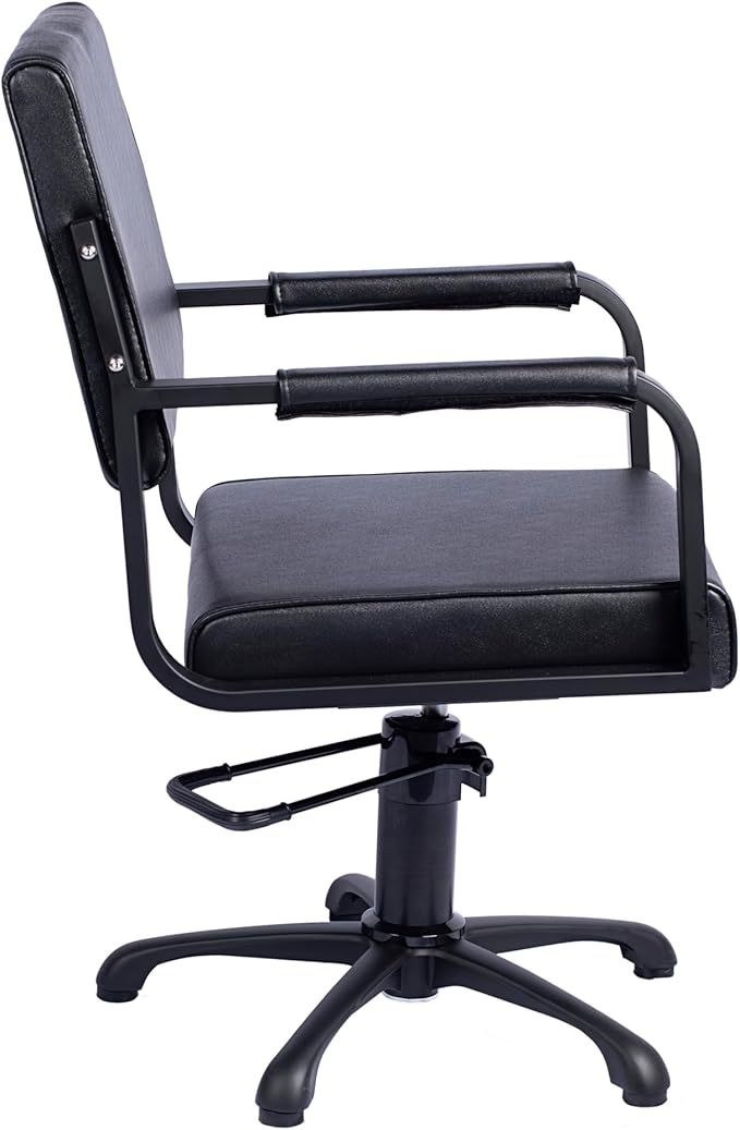 Esta cadeira de salão preta é perfeita para o seu salão profissional. Com a sua bomba hidráulica, pode ajustar facilmente a altura para se adequar às suas necessidades. Concebida com a elegância e o conforto em mente, a cadeira SILVANA P é um item essencial para o seu salão.