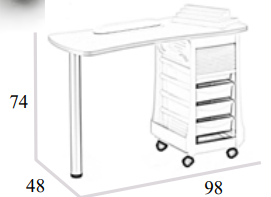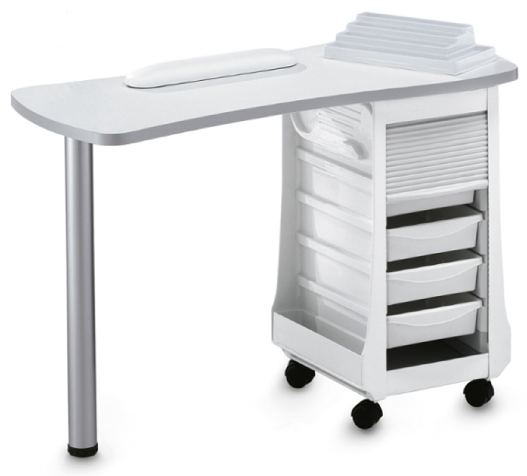 A mesa de manicure Arte é a solução perfeita para salões de beleza e centros de estética que procuram funcionalidade e design num único móvel. Equipada com uma gaveta lateral com vários tabuleiros, rodízios para facilitar a movimentação e um amplo espaço de trabalho, oferece conforto tanto para o profissional como para o cliente. Inclui um apoio para as mãos para maior conforto e é feita de materiais duráveis e fáceis de limpar.