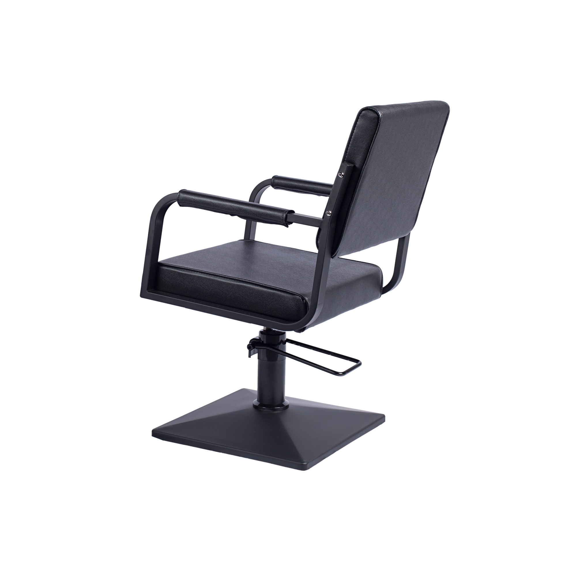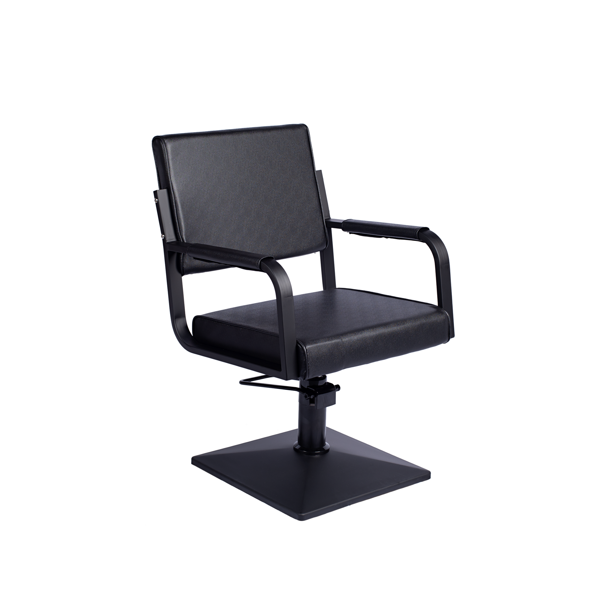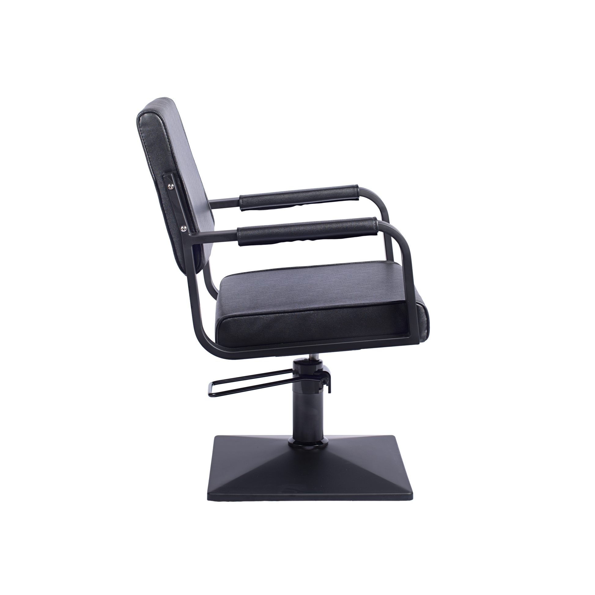 2 x cadeiras de cabeleireiro SILVANA Q (base quadrada hidráulica preta, estrutura de tubo de metal preto, estofos pretos)